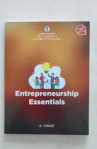 Entrepreneurship Essentials BBA Semester 4 Calicut University Entrepreneurship Essentials is a student-friendly textbook designed as per the 2024 Four Year Undergraduate Programme syllabus of the University of Calicut for B.B.A. students. Written in a clear and simple style, the book serves as a practical guide to understanding core concepts of entrepreneurship and supports effective exam preparation. Developed to function as a self-learning companion, it is a valuable resource for students aspiring to build strong entrepreneurial knowledge and skills.