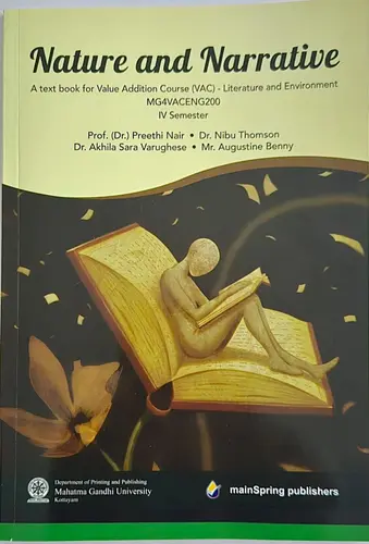 Nature and Narrative explores how stories, poems, and films reflect the intricate relationship between humans and nature. Designed for undergraduate students, this textbook highlights the ways imagination and ethics shape our understanding of ecological balance, sustainability, and coexistence. Through a blend of literary and visual narratives, it encourages reflection on themes such as human responsibility, environmental degradation, and the interdependence of all life forms. The book aims to nurture ecological sensitivity and critical awareness, helping learners see the environment not as a distant subject of study but as an integral part of cultural experience and everyday life.