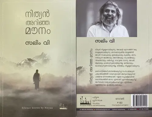 Nithyan Arinja Mounam Salim V Silence Books നിത്യൻ നിശ്ശബ്ദനായിരുന്നു. അവൻ്റെ ശ്വാസത്തിന് ഒരു താളമുണ്ടായിരുന്നു. മൗനമൊരുക്കിയ താളത്തിൽ അവൻ നടക്കുകയും ഇരിക്കുകയും ചെയ്തു. മൗനം നൽകുന്ന ജലത്താലും അന്നത്താലും ദാഹത്തെയും വിശപ്പിനെയും ശമിപ്പിച്ചു. വെറുതെ നടന്നു. അവൻ ആരെയും കാണുന്നുണ്ടായിരുന്നില്ല. ഒന്നിനെയും കേൾക്കുന്നുണ്ടായിരുന്നില്ല. തീർത്തും നിശ്ശബ്ദനായിരുന്നു. കഥാപാത്രങ്ങൾ മൗനത്തെക്കുറിച്ച് സംസാരിക്കുന്ന പശ്ചാത്തലത്തിൽ വായനക്കാരൻ അനുഭവിക്കുന്നത് പരമമായ മൗനത്തെയാണ്. വളരെ സുക്ഷമാണത്. യഥാർത്ഥത്തിൽ മൗനം എന്താണ് എന്നതിനെക്കുറിച്ച് അറിയേണ്ട സത്യാന്വേഷികൾക്ക് ഈ പുസ്തകം വളരെയധികം ഉപകാരപ്രദമാകും.