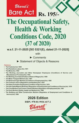 The Factories Act, 1948 The Plantations Labour Act, 1951 The Mines Act, 1952 The Working Journalist and Other Newspaper Employees (Conditions of Service and Miscellaneous Provision) Act, 1955 The Working Journalist (Fixation of Rates of Wages) Act, 1958 The Motor Transport Workers Act, 1961 The Beedi and Cigar Workers (Conditions of Employment) Act, 1966 The Contract Labour (Regulation and Abolition) Act, 1970 The Sales Promotion Employees (Condition of Service) Act, 1976 The Inter-State Migrant Workmen (Regulation of Employment and Conditions of Service) Act, 1979 The Cine-Workers and Cinema Theatre Workers (Regulation of Employment) Act, 1981 The Dock Workers (Safety, Health and Welfare) Act, 1986 The Building and Other Construction Workers (Regulation of Employment and Conditions of Service) Act, 1996 2026 Edition