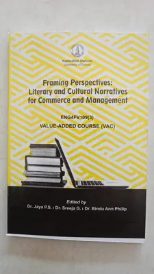 Framing Perspectives : Literary And Cultural Narratives For Commerce And Management BA English Semester 4 | Calicut University Framing Perspectives: Literary and Cultural Narratives for Commerce and Management is an interdisciplinary textbook designed for undergraduate students of commerce and management. Through carefully selected literary texts, articles, talks, and visual media, the book builds critical thinking, ethical awareness, scientific temper, and communication skills. Organised into four modules—Human Rights, Scientific Temper, Professional Ethics, and Health & Wellness—it helps students understand the human, social, and ethical dimensions behind business decisions, preparing them to become responsible professionals and informed global citizens.