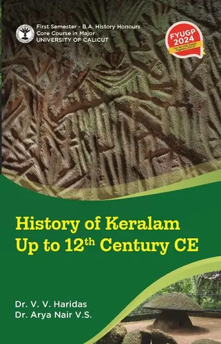 History Of Keralam Up To 12th Century BA History Semester 1 Calicut University This textbook is designed for the first semester of the Four Year Undergraduate Programme (FYUGP) by Calicut University, focusing on the history of Kerala from prehistoric times to the 12th century CE. It explores Kerala’s geography, early settlers, culture, trade, governance, and religious traditions in an easy-to-understand way. The book encourages students to think critically about history and offers additional reading for those interested in deeper study. It helps students understand how Kerala’s unique environment and rich cultural heritage shaped its past and present. This book is a great starting point for anyone wanting to learn more about Kerala’s fascinating history.
