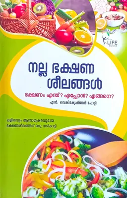 Nalla Bhakshana Seelangal N.Venkitakrishnan Potty സമീകൃതമെന്ന് വിദഗ്ധർ പറയുന്ന ആഹാരം ശീലിച്ചിട്ടും ജീവിതശൈലി രോഗങ്ങൾ, ആനാരോഗ്യം, ഉന്മേഷക്കുറവ്, അകാരണമായ ക്ഷീണം ഇതെല്ലാം വരുന്നത് എന്തുകൊണ്ടാണ്? അത്തരം സംശയങ്ങളെ ദുരീകരിക്കാൻ ഈ പുസ്തകം മറിച്ചു നോക്കിയാൽ മതി. ഒരു ദിവസം നമ്മൾ കഴിക്കുന്ന ആഹാരത്തി ൻ്റെ പട്ടിക പരിശോധിച്ചു നോക്കു, ശരീരത്തിനും മനസ്സിനും ഗുണകരമായ ഘടകങ്ങൾ അതിൽ എത്രമാത്രമുണ്ടെന്ന് മനസ്സി ലാക്കാം. നമുക്ക് ഗുണകരമായ ഭക്ഷണം ഏതാണെന്ന് അറിയാ നും കുറച്ചുകൂടി വിവേകപൂർവമായ സമീപനം പുലർത്താനും ഉപകരിക്കുന്ന പുസ്തകംകുടിയാണിത്